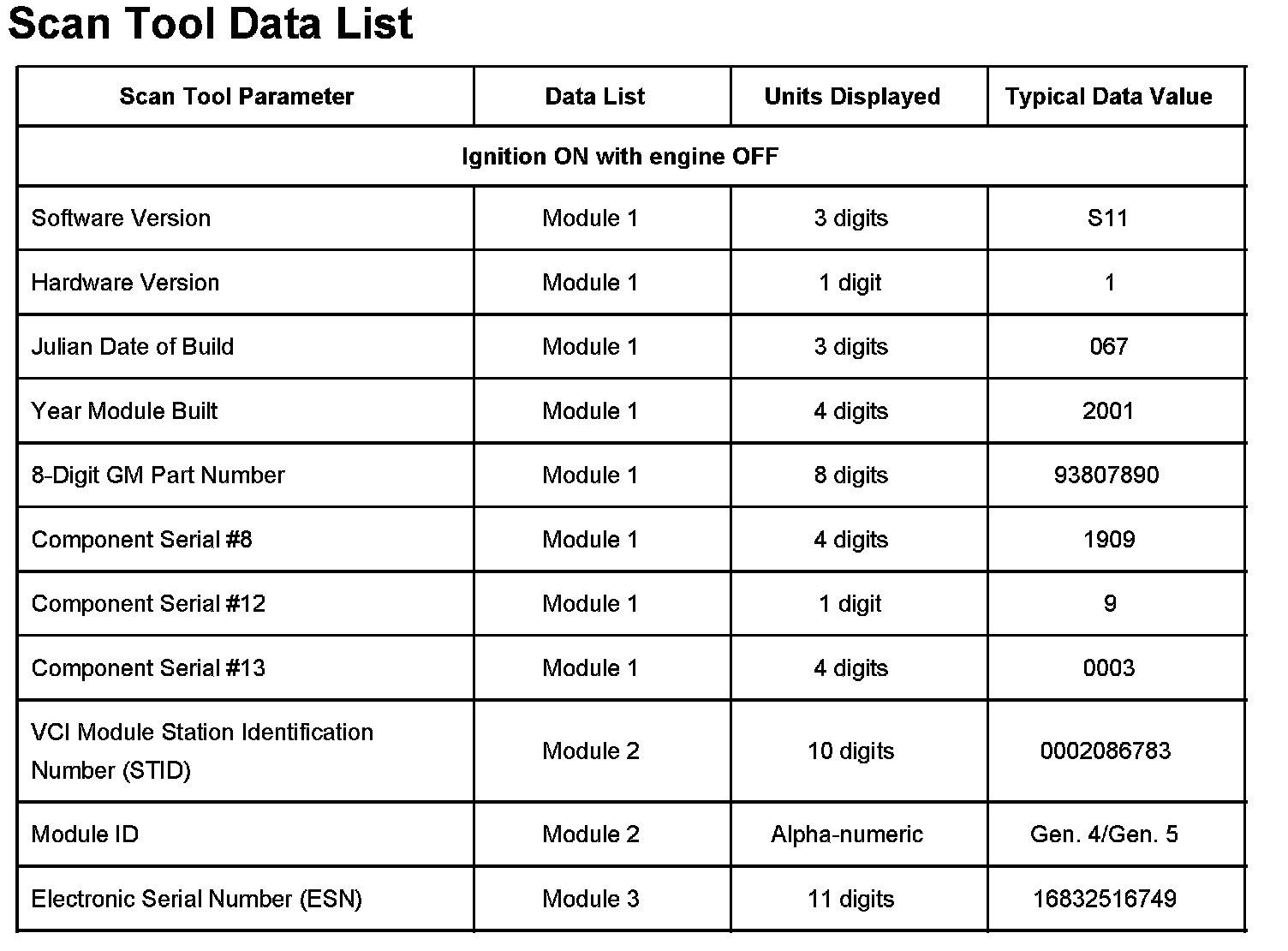 Scan Tool Data List: