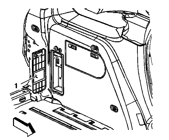 The service parts identification label (1) is located on the inside of the rear bumper fascia access hole cover. Refer to RPO Code List for a definition of the codes that are printed on the service parts identification label or referred to in this service information.