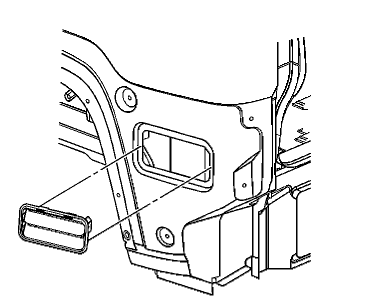 2. Press the pressure relief valve into the quarter lower panel until the retainers lock into place at the upper and lower locations.