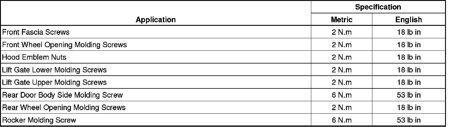 Exterior Moulding / Trim: Specifications