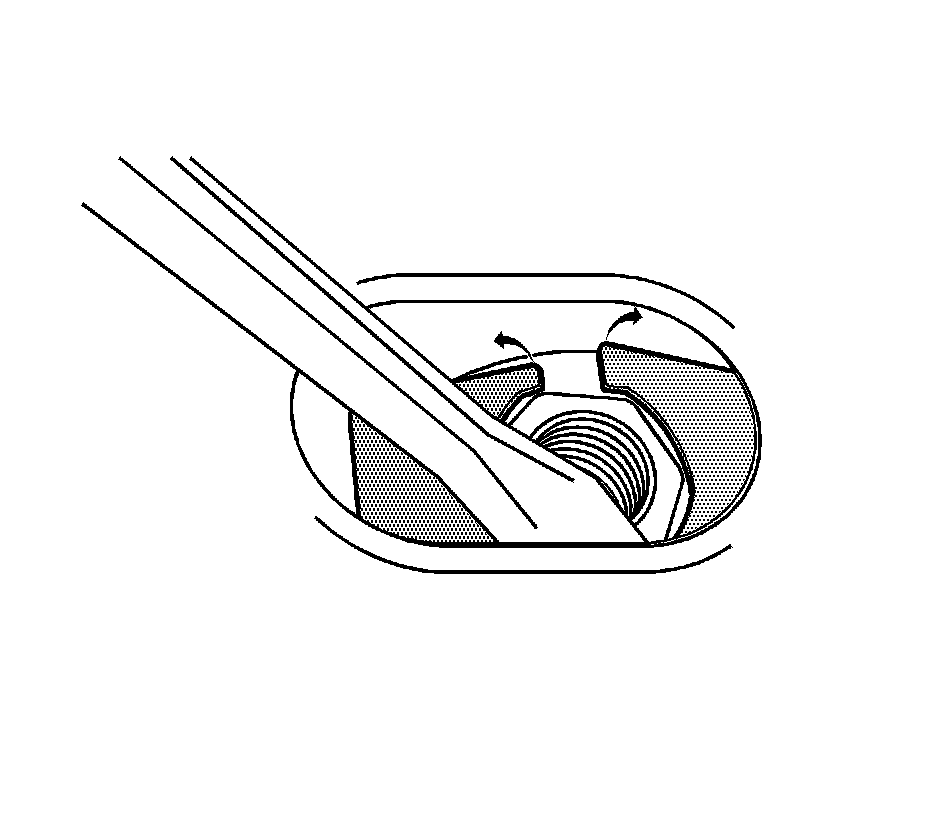 9. Using a flat-bladed tool, pry open the cage nut retainer just enough to remove the gage nut.