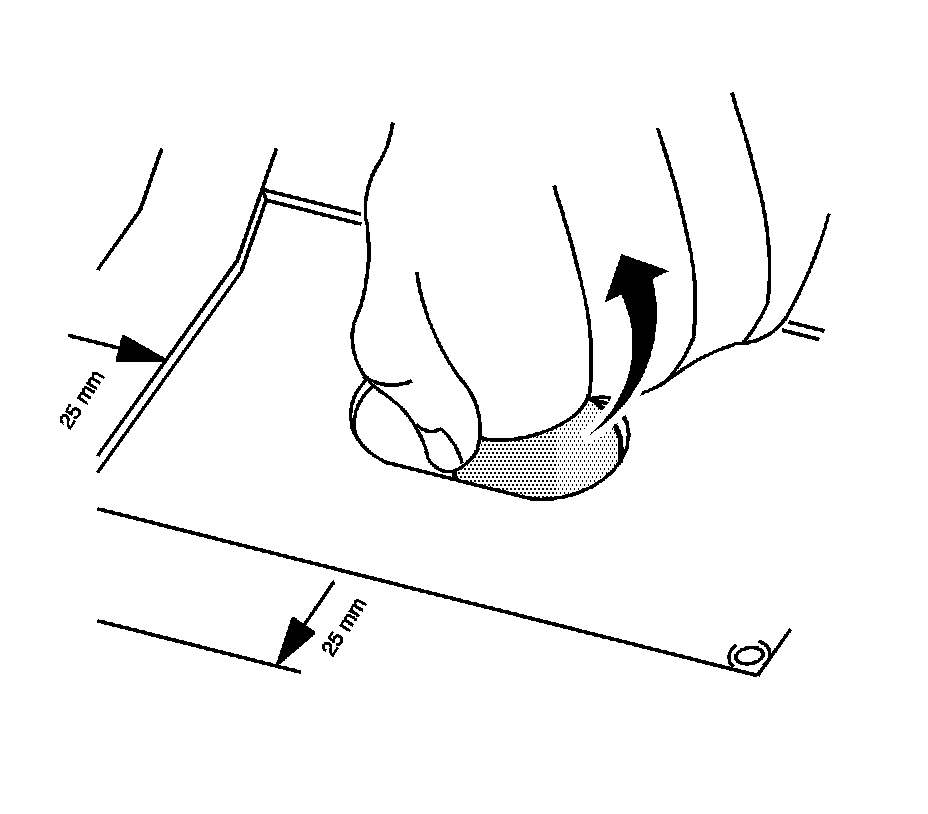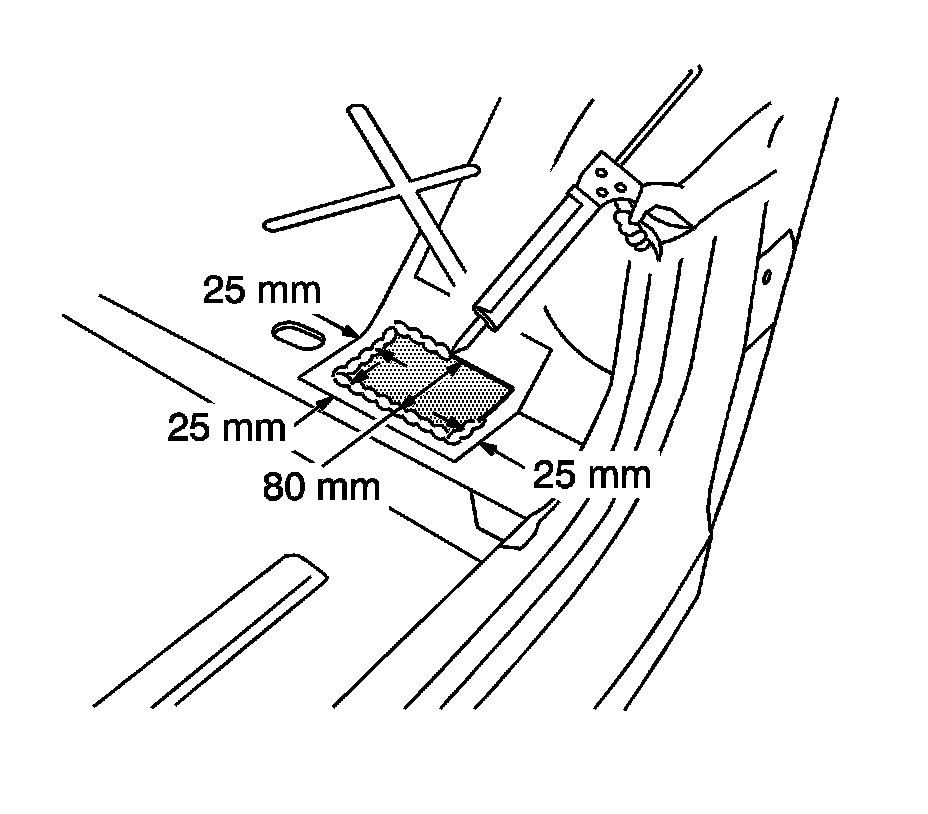 4. Apply a 3-6 mm (1/8-1/4 in) bead of metal panel bonding adhesive GM P/N 12378566/7 (Canadian P/N 88901674/5) or equivalent to both of the mating surfaces.