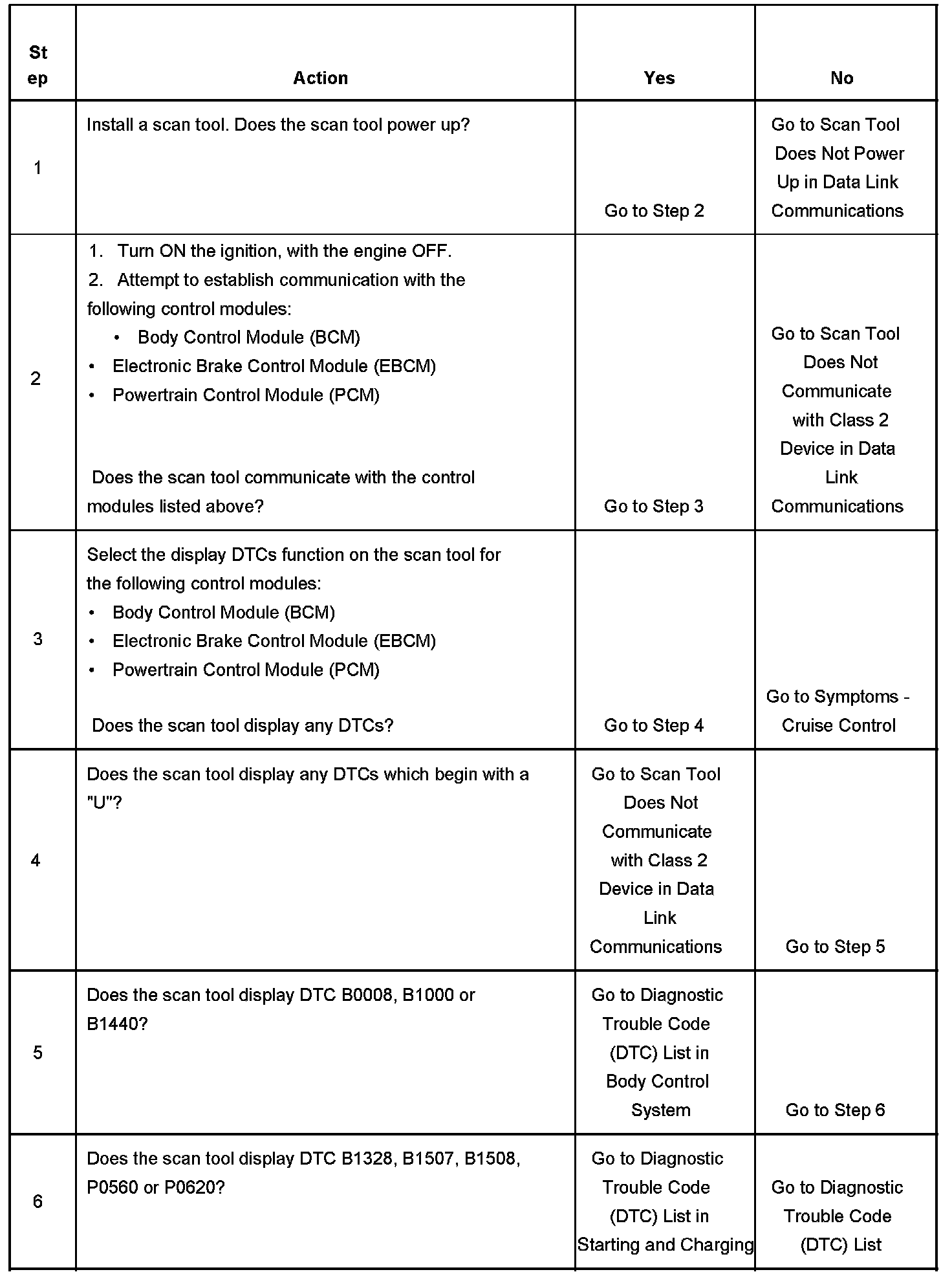2. Lack of communication may be due to a partial or total malfunction of the class 2 serial data circuit. The specified procedure will determine the particular condition.
