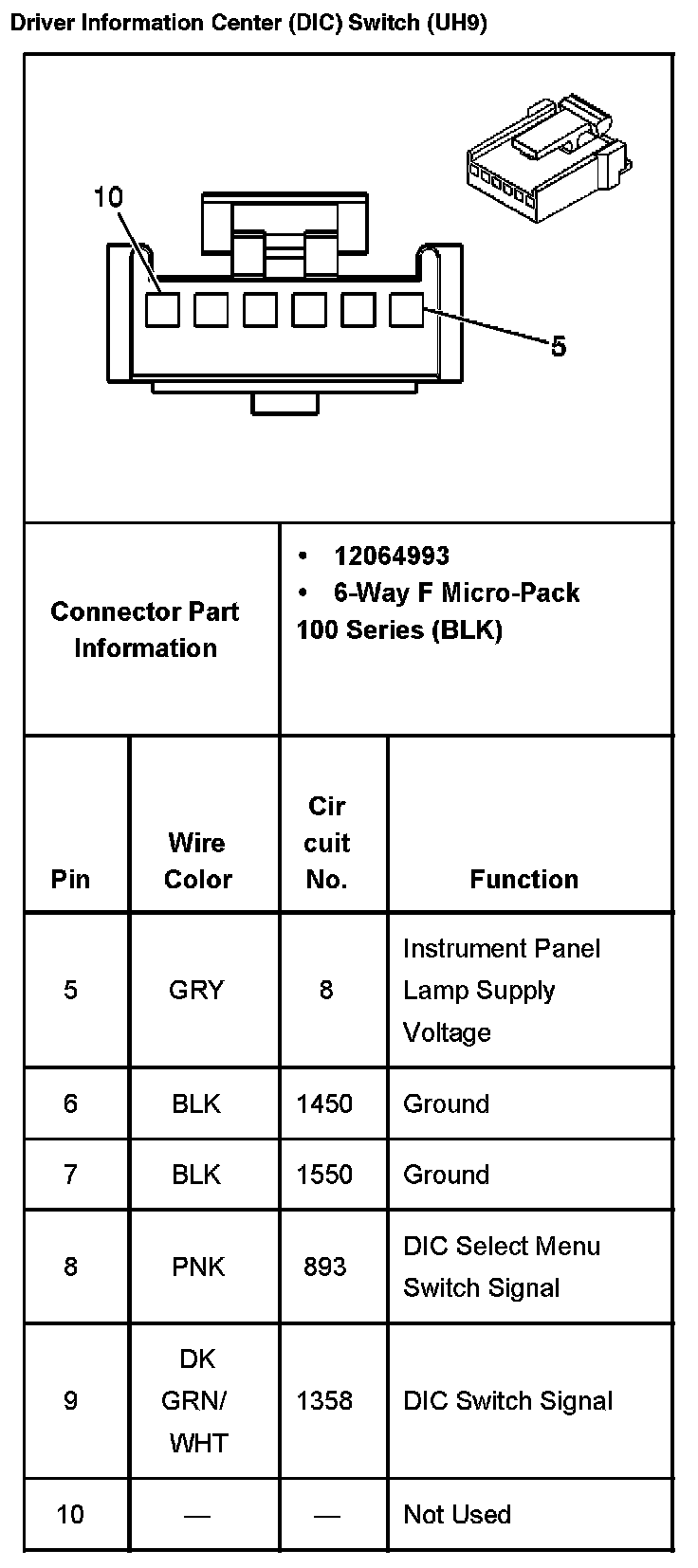 Driver Information Center (DIC) Switch (With RPO Code UH9):