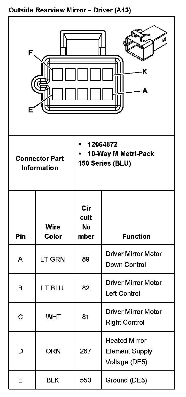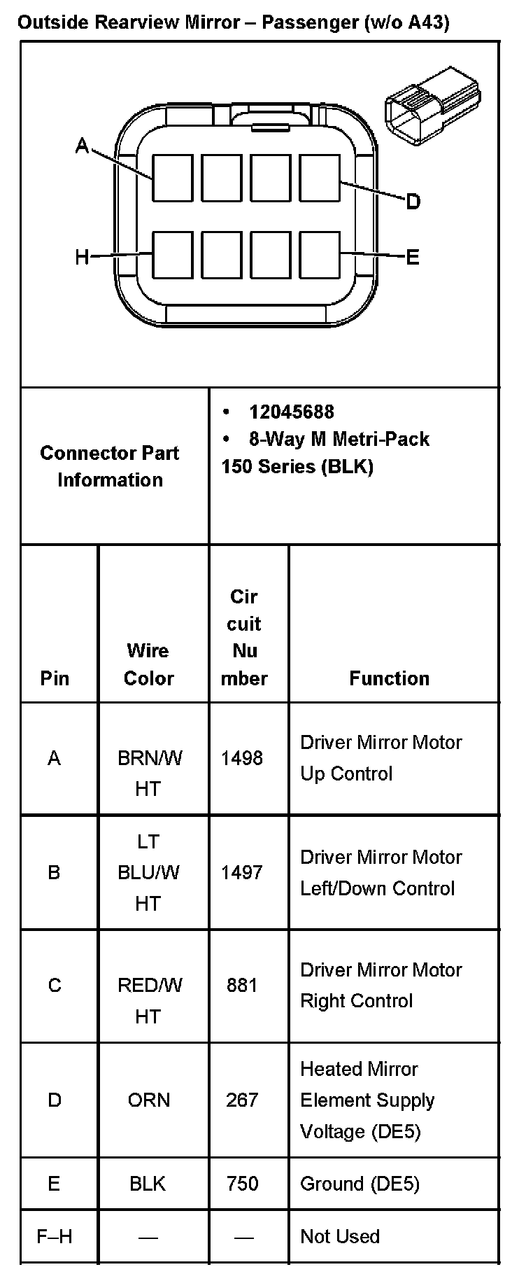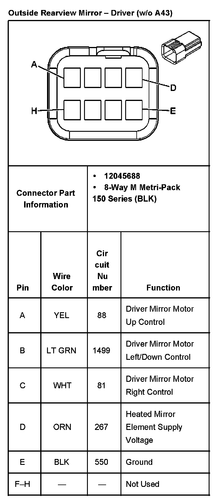 Outside Rearview Mirror - Driver With RPO Code A43 Part 2: