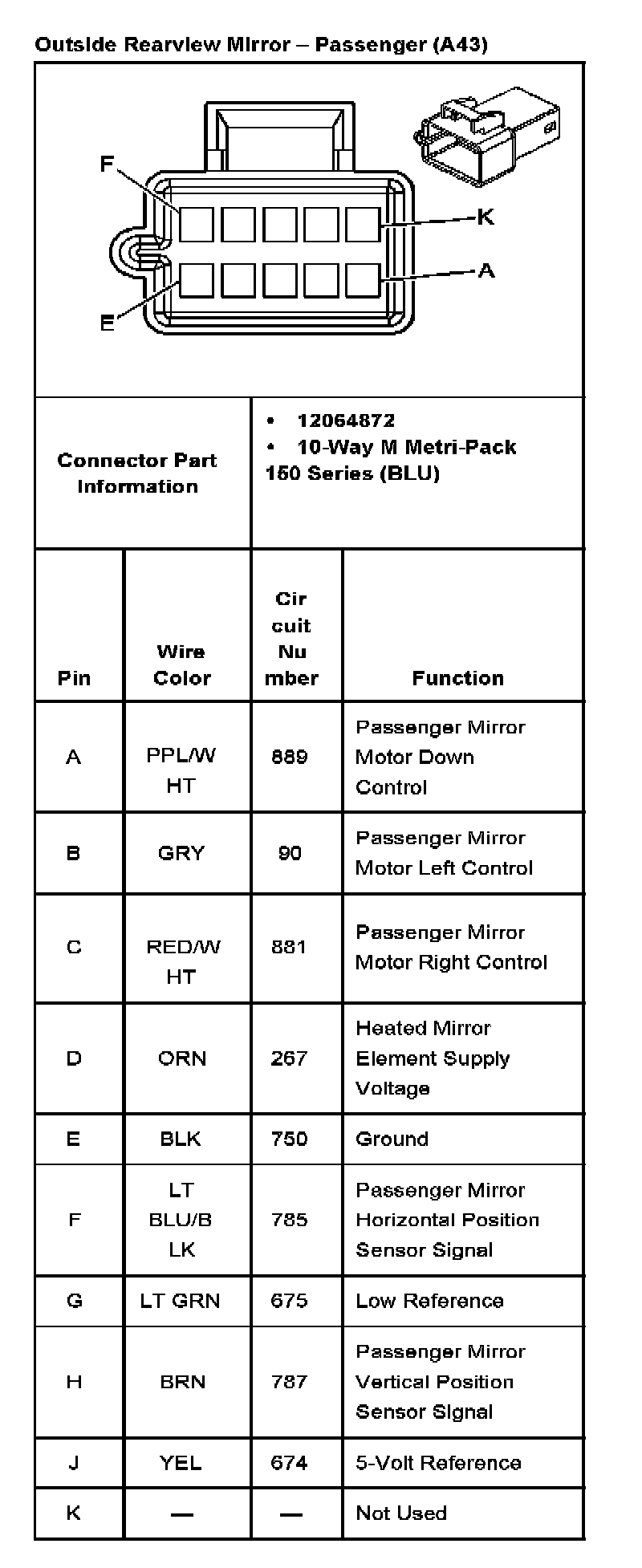 Outside Rearview Mirror - Passenger With RPO Code A43: