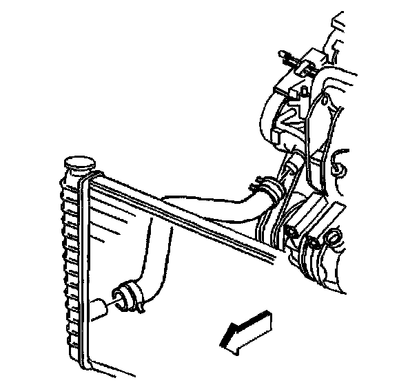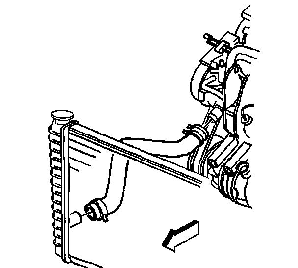 13. Reposition the hose clamp at the radiator to secure the hose using the J 38185.