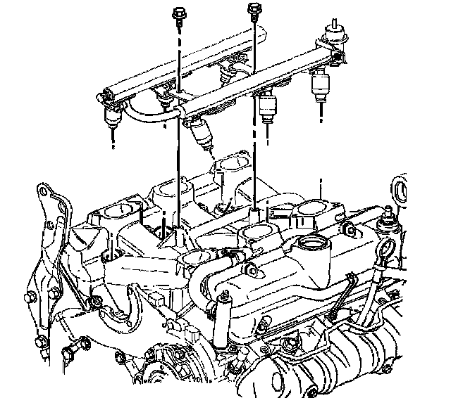 6. Remove the fuel feed and return pipe from the fuel injector rail.