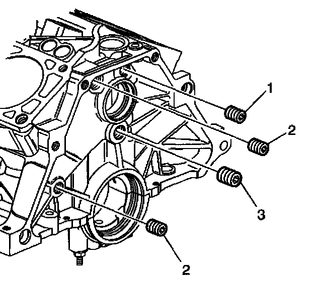 2. Remove the rear oil gallery plugs (1, 2, 3).