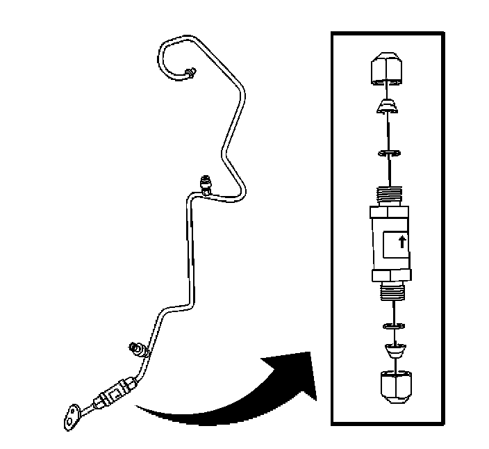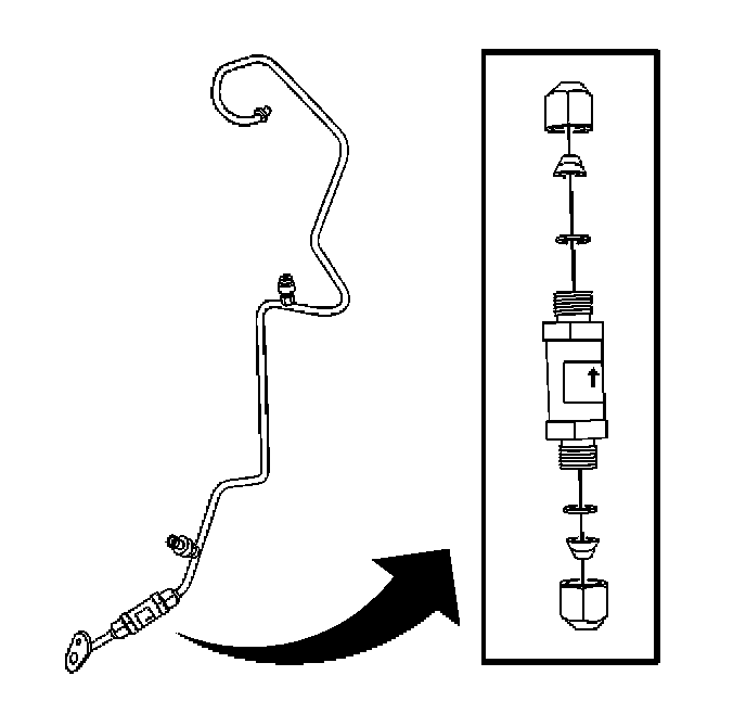 3. Install the A/C refrigerant filter to the evaporator inlet tube with the arrow pointing toward the evaporator.