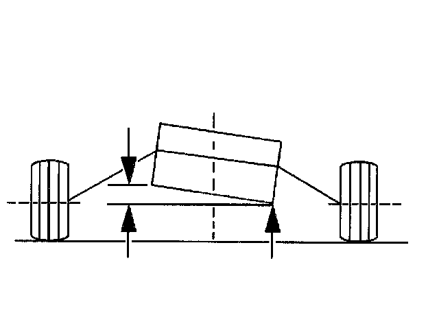 ^ Left-to-right differences in the front view axle angle may cause significant steering pull in a vehicle. The pull will be to the side with the most downward sloping axle from the differential to the wheels. Axles typically slope downward from the differential. The slope of the transaxle pan to level ground may be used as an indication of bias axle angles. The side with the higher transaxle pan (shown on the left side of the illustration) has the most downward sloping axle angle.