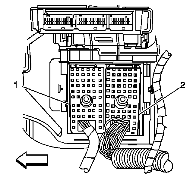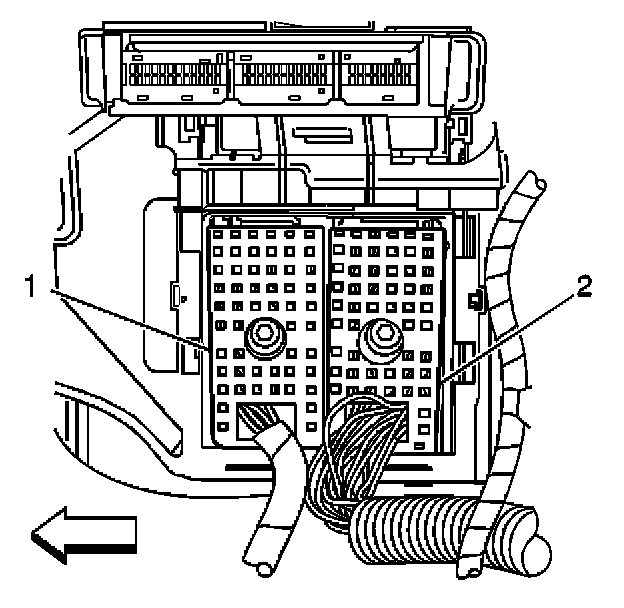 6. Remove the console accessory wiring junction block (2) out of the console accessory wiring junction block bracket.