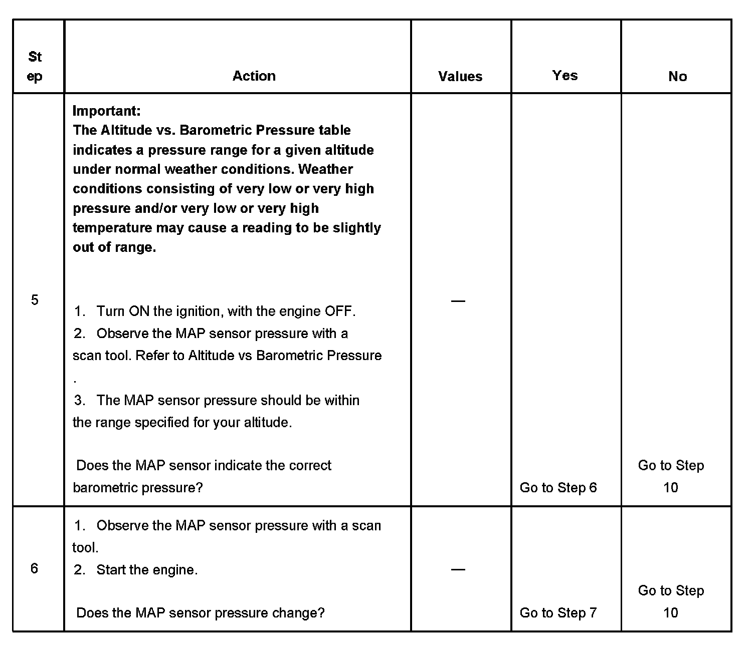 4. This step tests the MAP sensor's ability to correctly indicate BARO.
