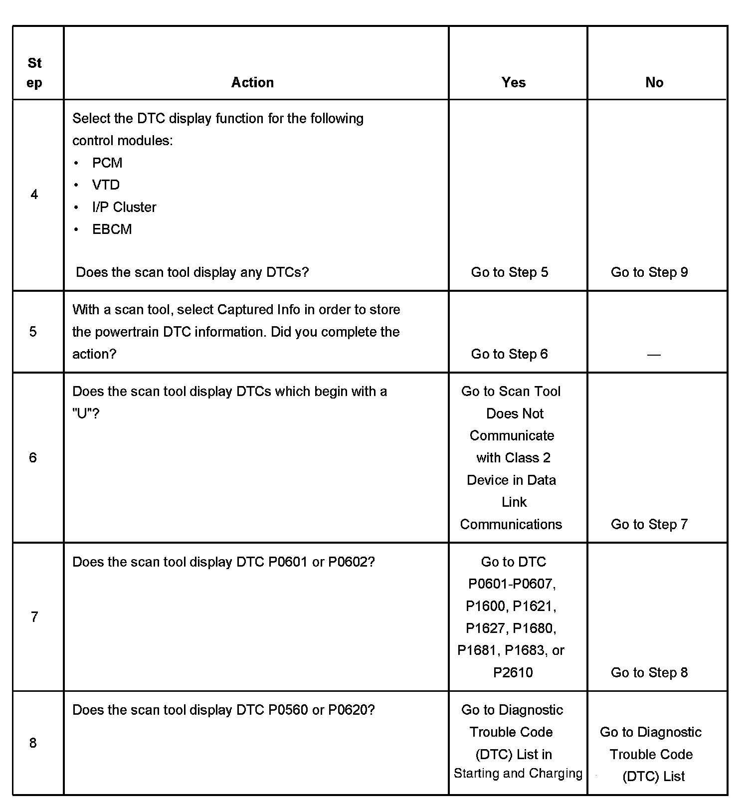 6. The presence of DTCs which begin with "U", indicate that some other control module is not communicating. Following the specified procedure will gather all the available information before you perform the tests.