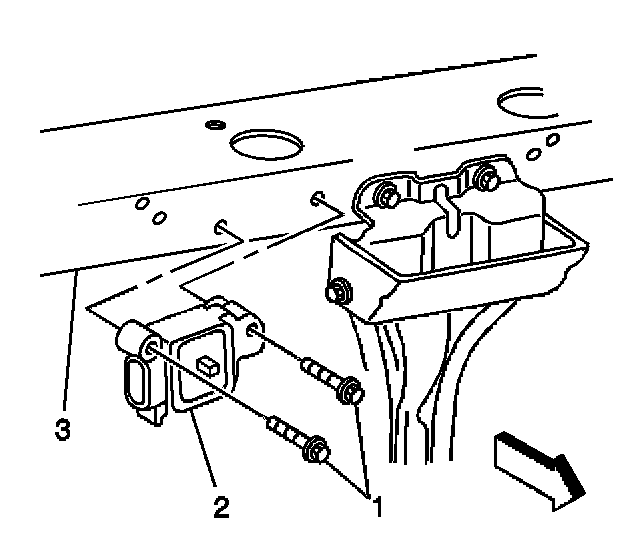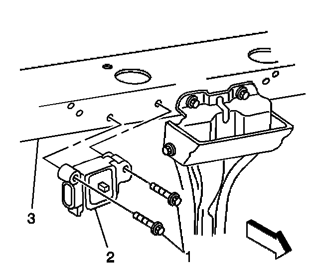 8. Remove the sensor (2) from the upper radiator core support (3).