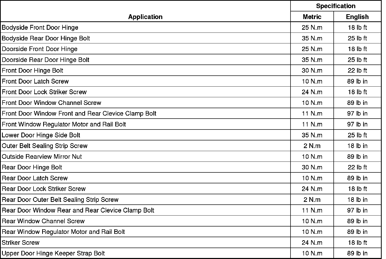 Fastener Tightening Specifications