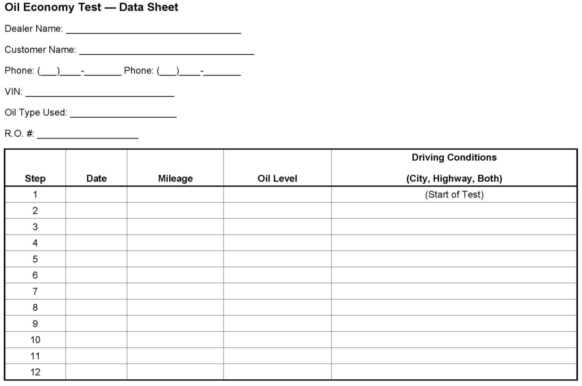 6. Record the vehicle mileage, date, and exact oil level on the form shown above.