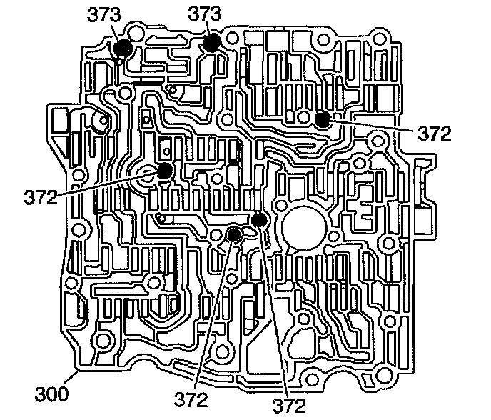 3. Install the ball check valves (372, 373) into the valve body. Use the J36850 to retain the ball check valves in their proper locations.