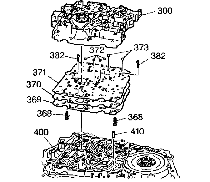 4. Remove the valve body (300) while keeping the spacer plate (370) with the transaxle.