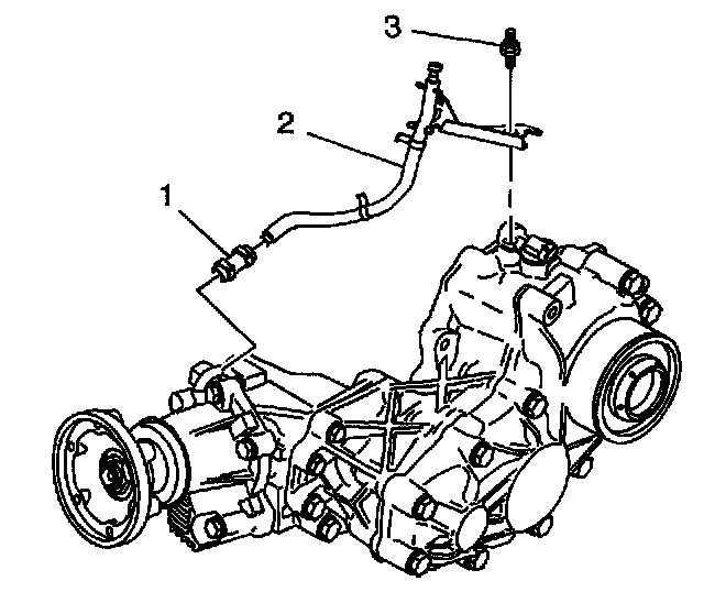 3. Remove the speed sensor/vent hose bolt (3) from the transfer case.
