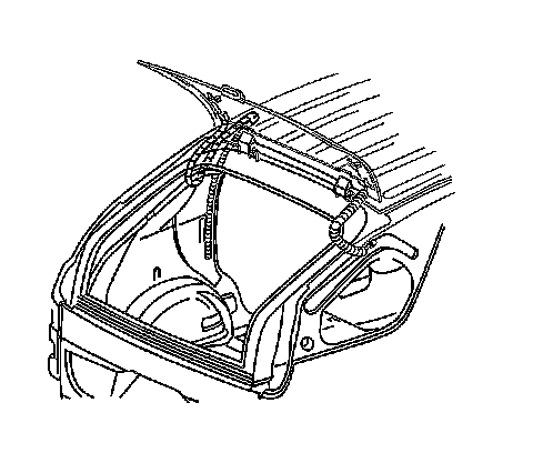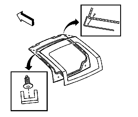 2. Install the liftgate window and frame to the vehicle. Refer toLift Gate Replacement (Rendezvous) (Lift Gate Replacement (Rendezvous))Lift Gate Replacement (Aztek) (Lift Gate Replacement (Aztek)) in Body Rear End.