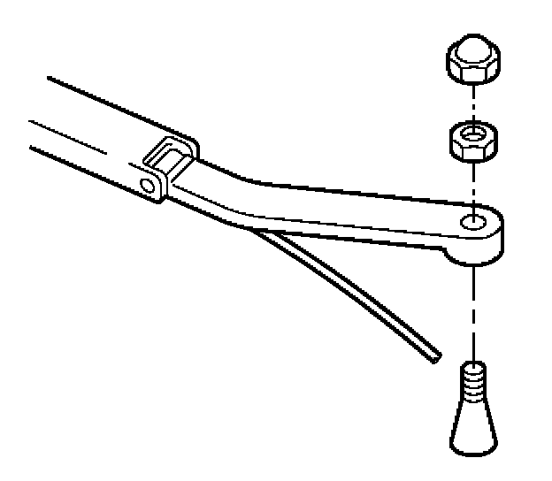 6. Remove the wiper arm nut from the wiper transmission drive shaft.