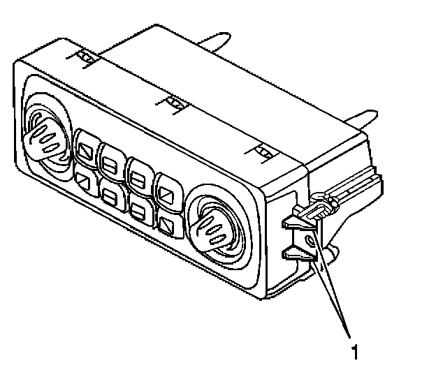 2. Pinch the tabs (1) on the control head and pull rearward on the HVAC control module to remove from the instrument panel.