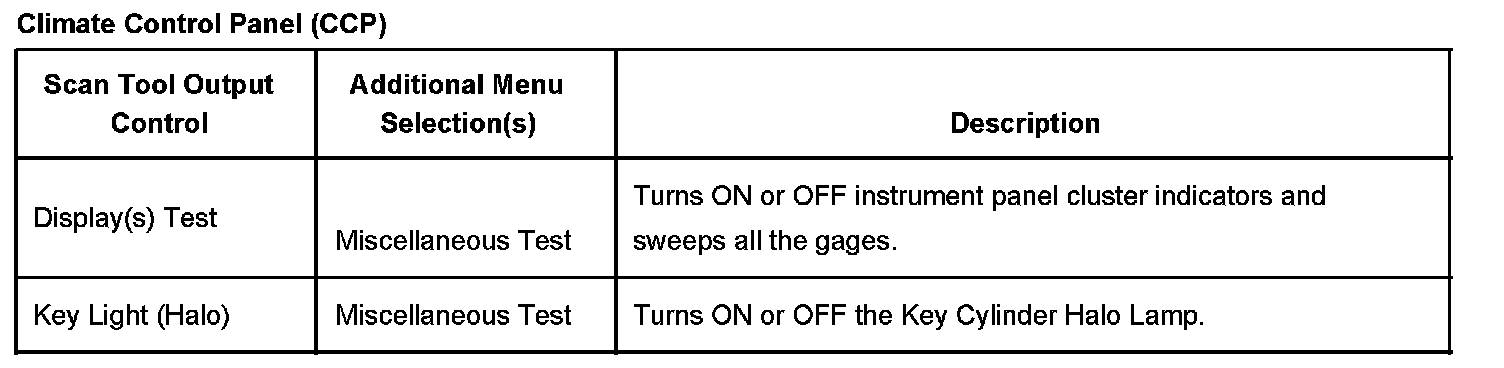 Scan Tool Output Controls - Climate Control Panel (CCP)