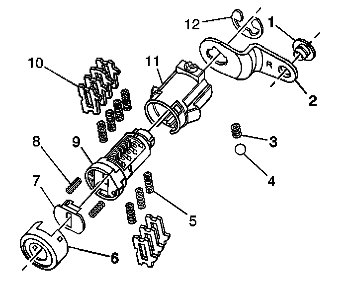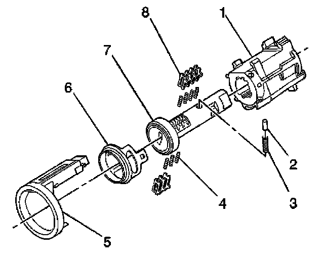 IMPORTANT: The ignition lock cylinder tumblers (8) are not self retaining and must be held in place if the key is not fully inserted into the lock cylinder.