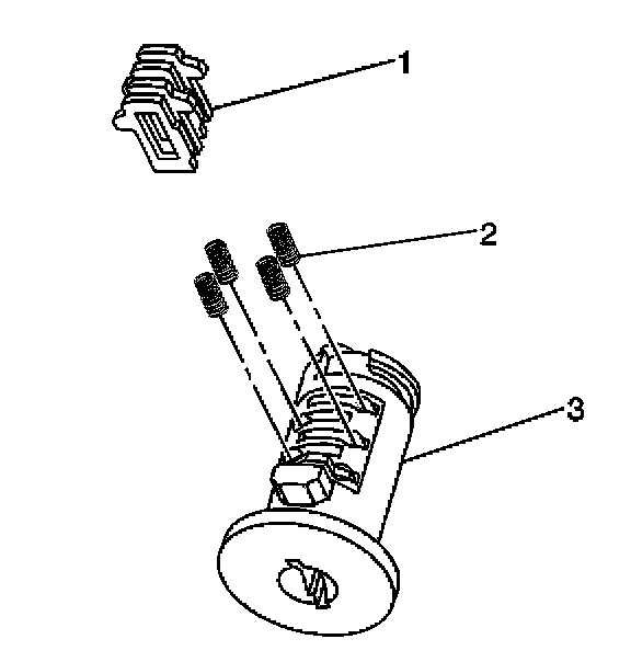 16. Install the lock cylinder cap (3) by aligning the two notches in the cap with the drain hole located on the bottom of the case assembly (1) and the corresponding feature on the top of the case assembly (1). Press the cap into place with light hand pressure.