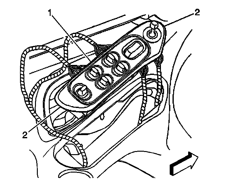 2. Remove the accessory switch plate (1) from the door trim panel.