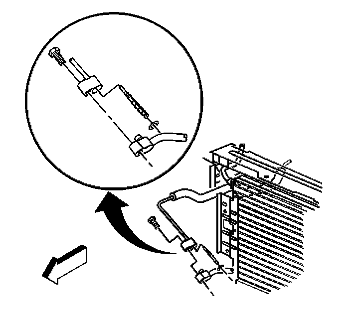 3. Remove the bolt holding the evaporator hose assembly to the condenser.