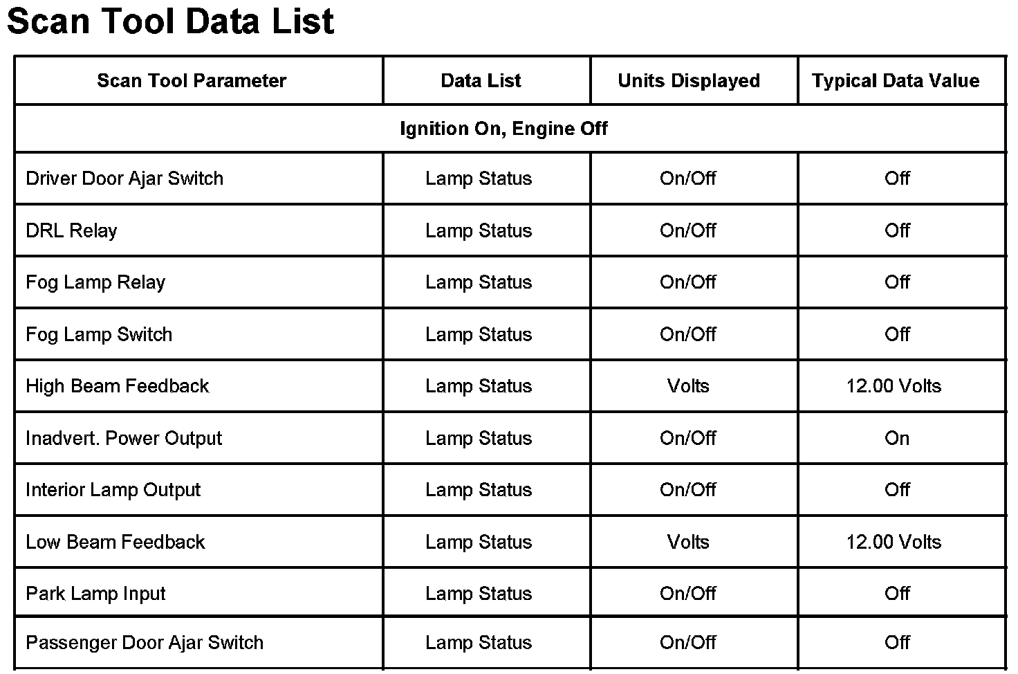 Scan Tool Data List: