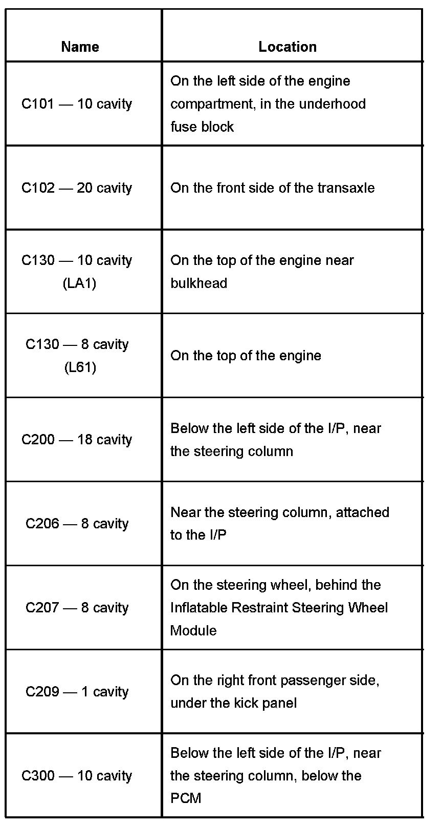 Connector Locations