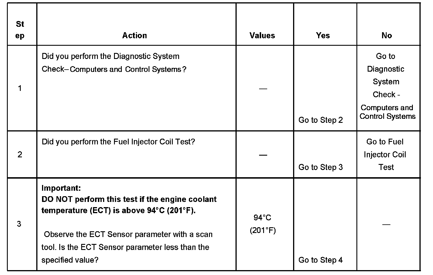 3. The engine coolant temperature (ECT) must be below the operating temperature in order to avoid irregular fuel pressure readings due to hot soak fuel boiling.