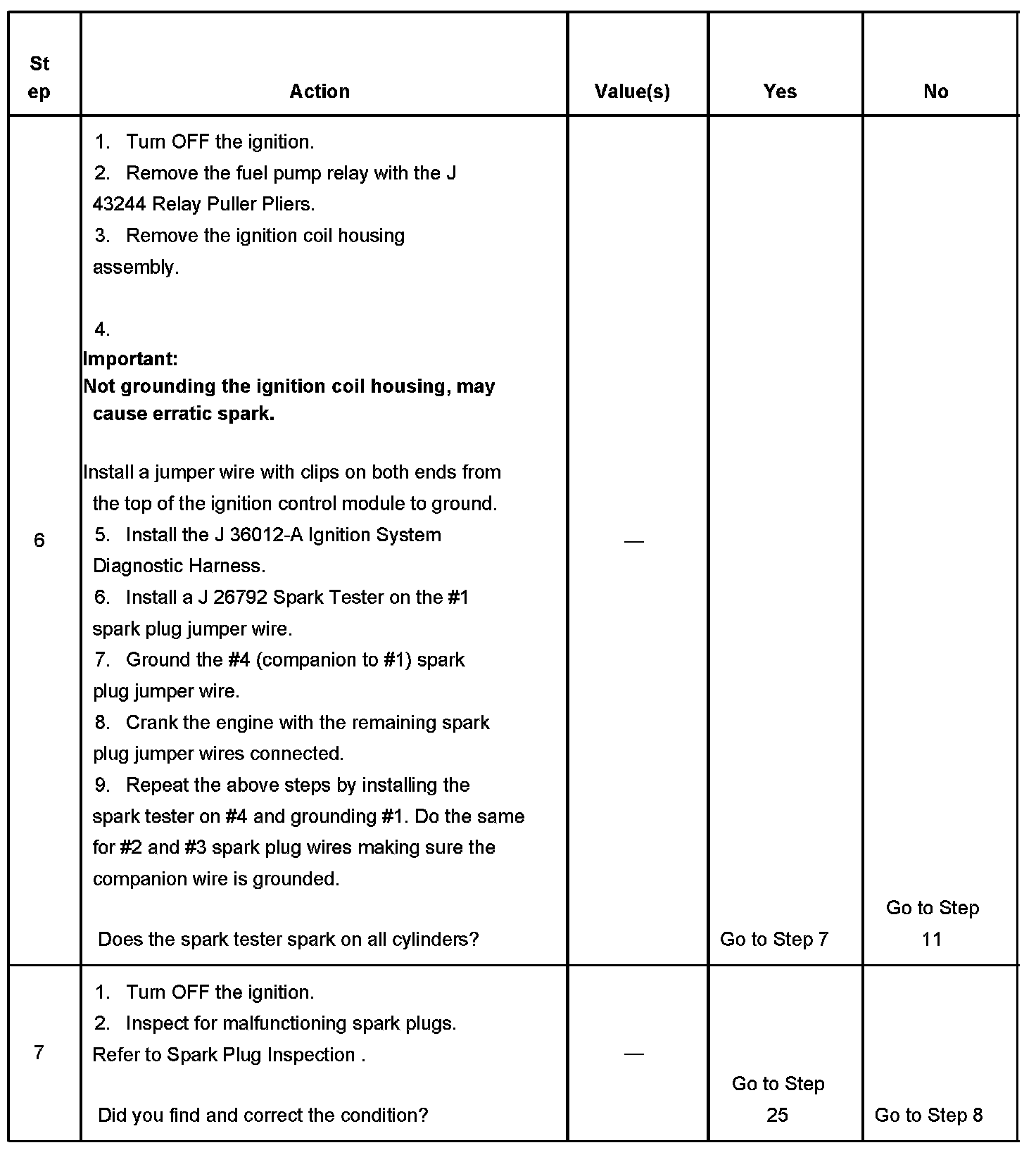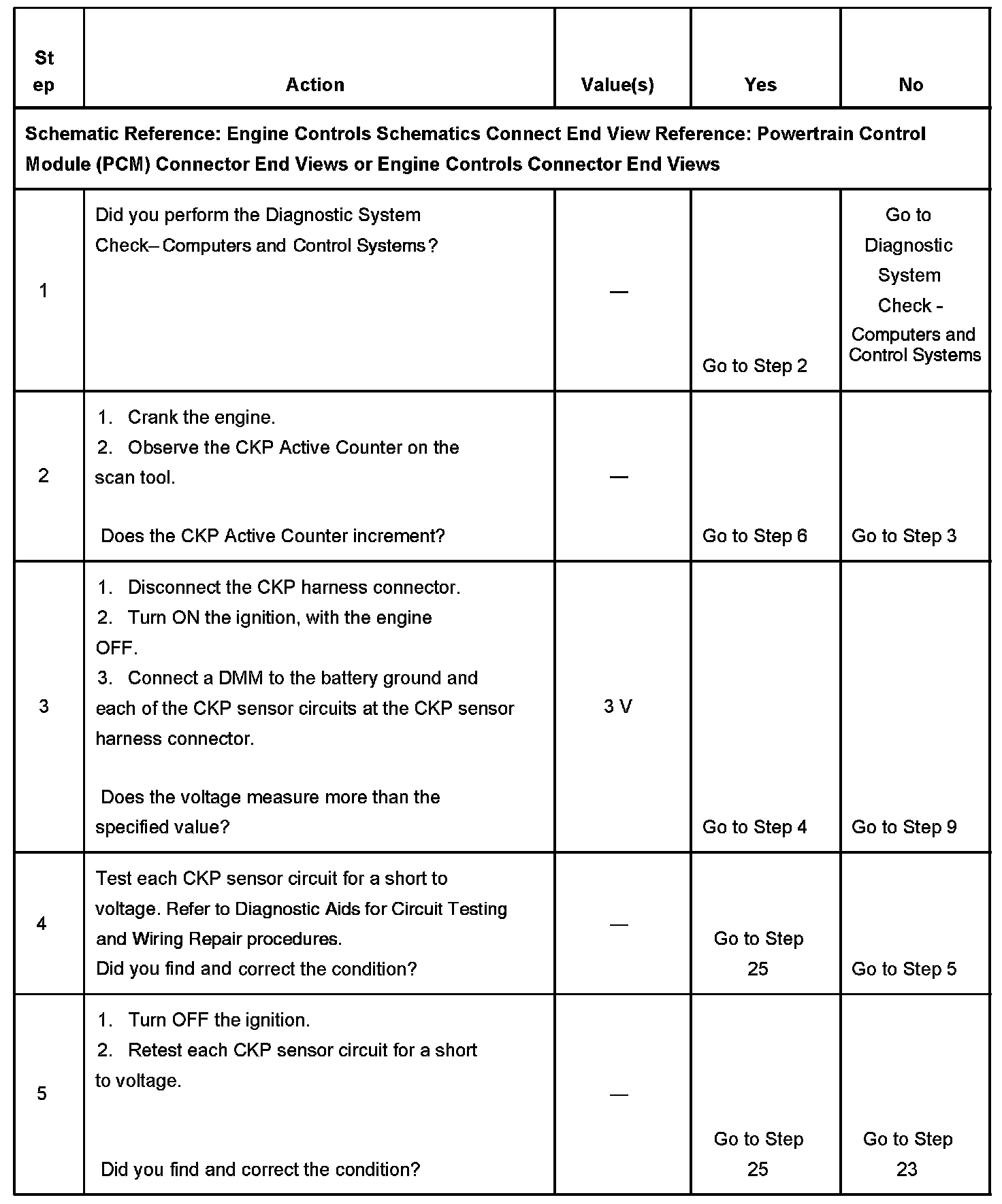 The numbers below refer to the step numbers on the diagnostic table.