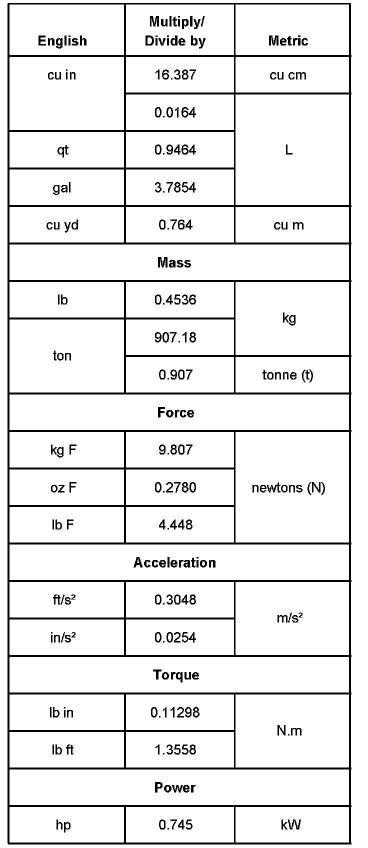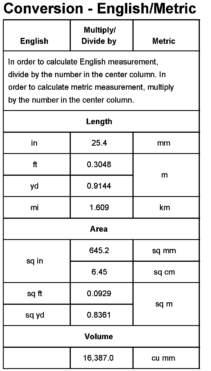 Conversion - English/Metric