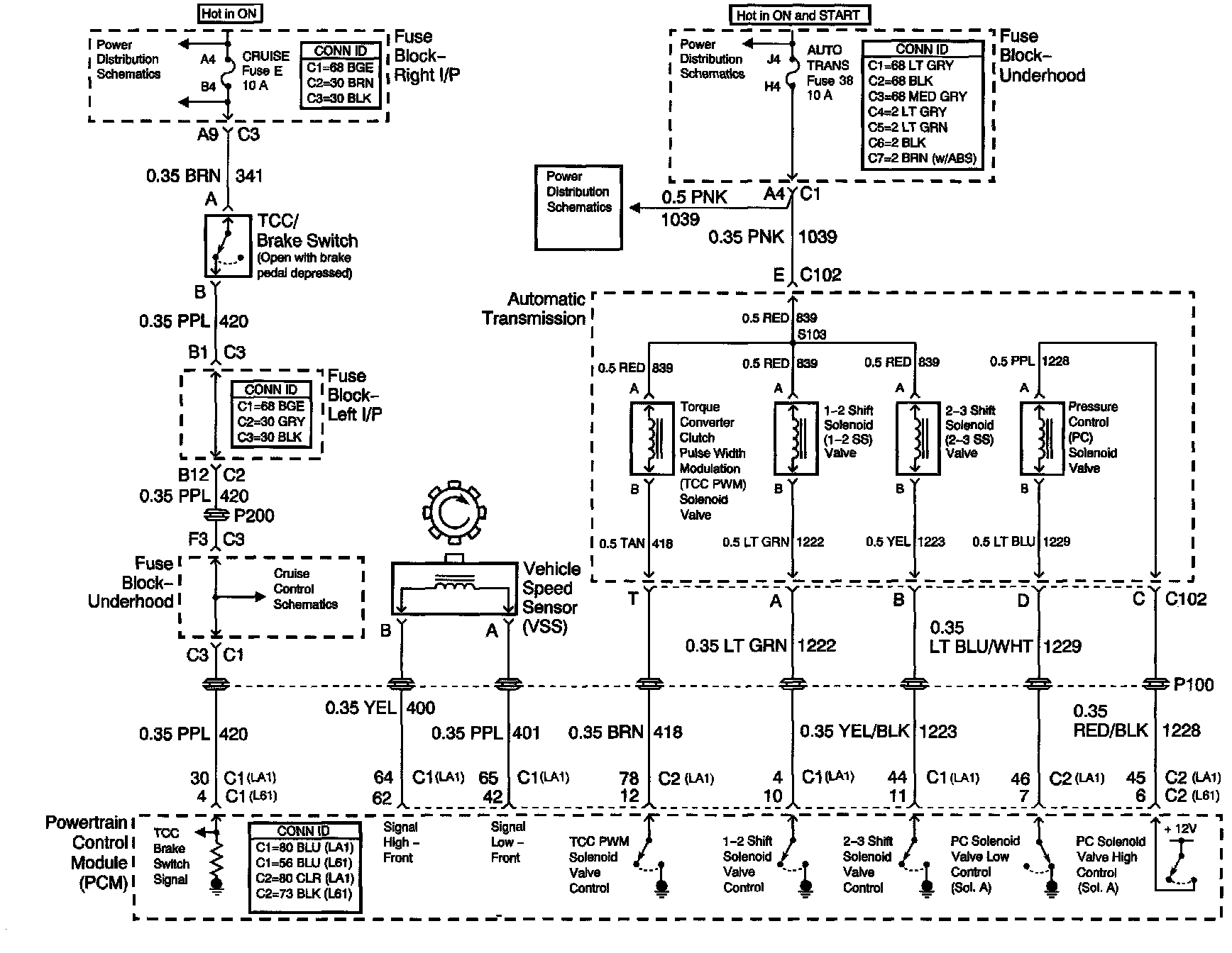 Transmission Solenoids, VSS, And TCC Brake Switch Signal: