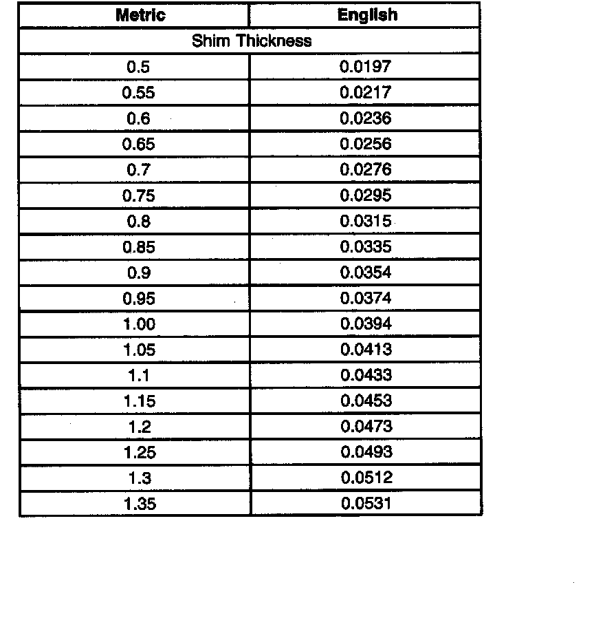 Shim Size Specifications