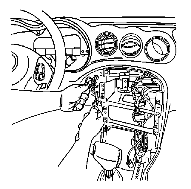 4.1. Using a small curved tool or an L-shaped hex wrench, depress and hold the detent on the ignition lock cylinder. If you cannot locate the detent with the tool, remove the radio. View the detent through the radio opening.
