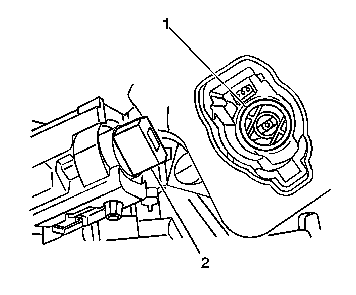 3. Install the lock cylinder to the ignition switch. If you turned the key slightly while removing the lock cylinder, you may have to align the white colored ignition switch rotor (1) with the lock cylinder (2). You can rotate the ignition switch rotor (1) with your finger.