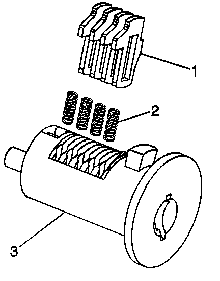 1. Hold the cylinder (3) so that the side with 4 tumbler spring wells is facing up.