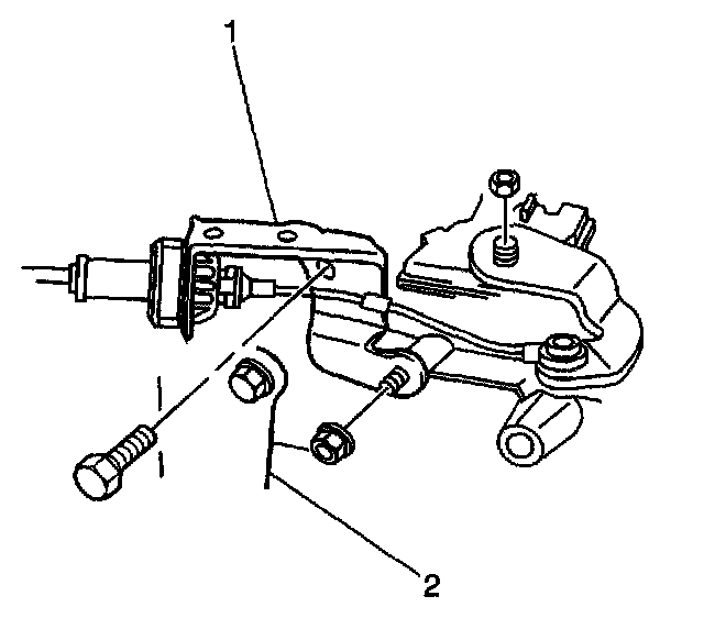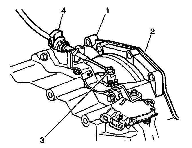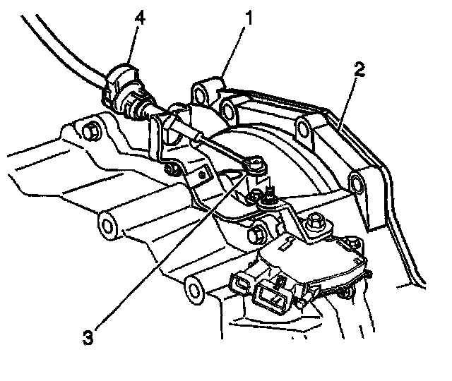 2. Remove the cable (4) at the transmission (2) shift control assembly (3).