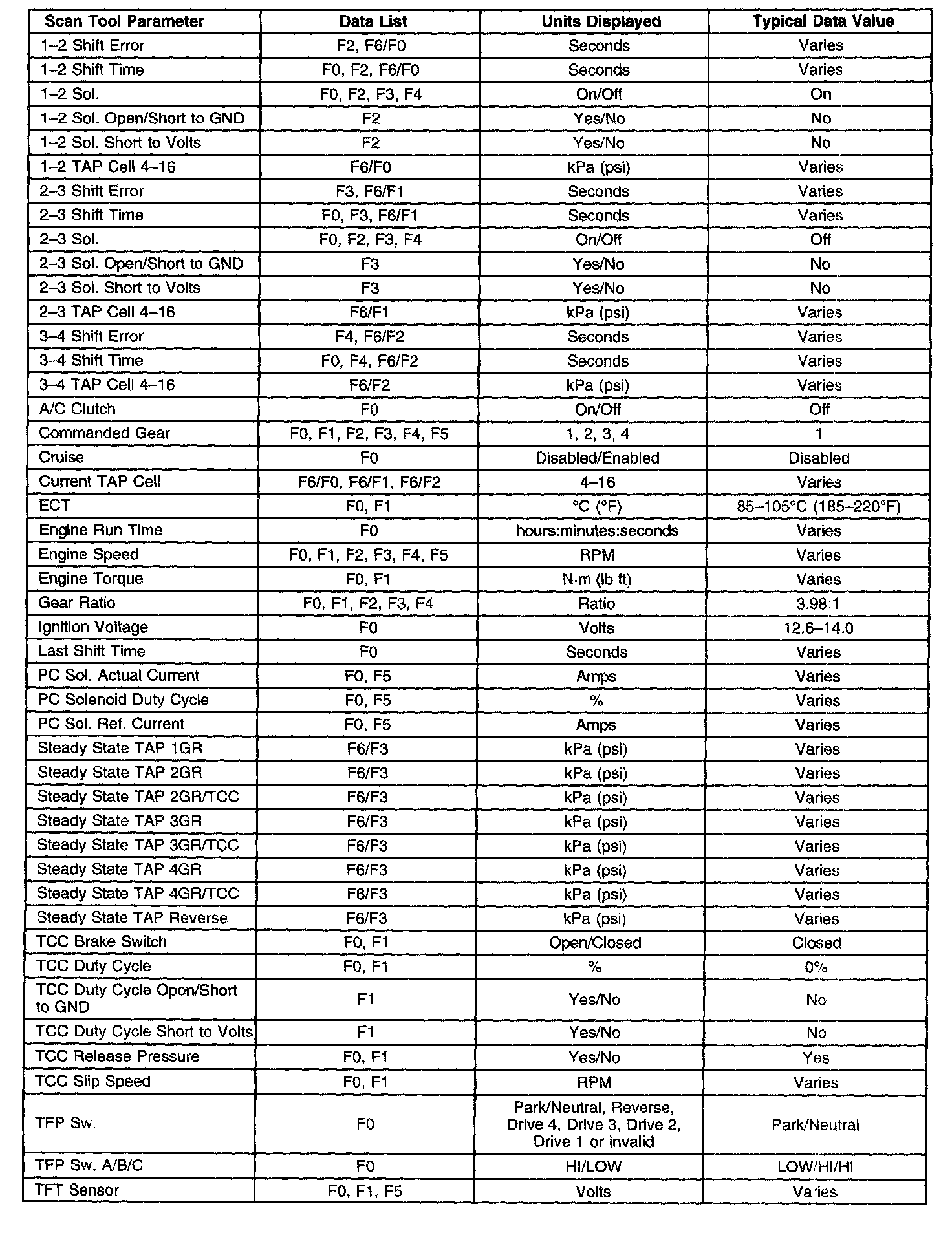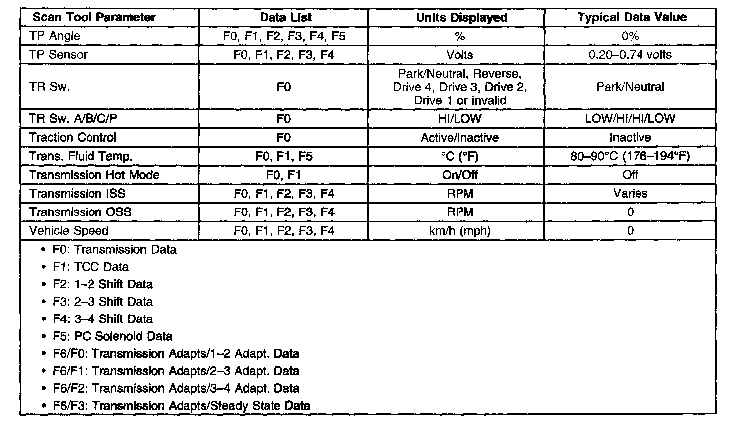 Transmission Scan Tool Data ListUse the scan tool data values under the following conditions: