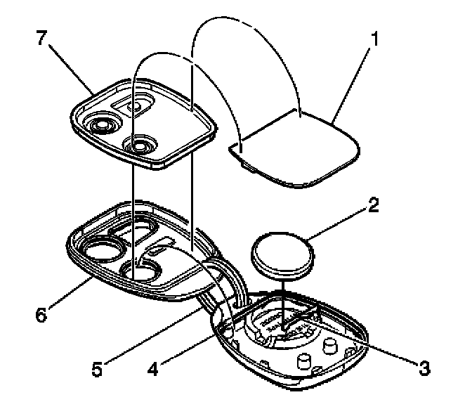 0.1. Insert a small flat-bladed tool between the 2 halves of the transmitter case (6,4) at the slot provided near the key ring hole (5).