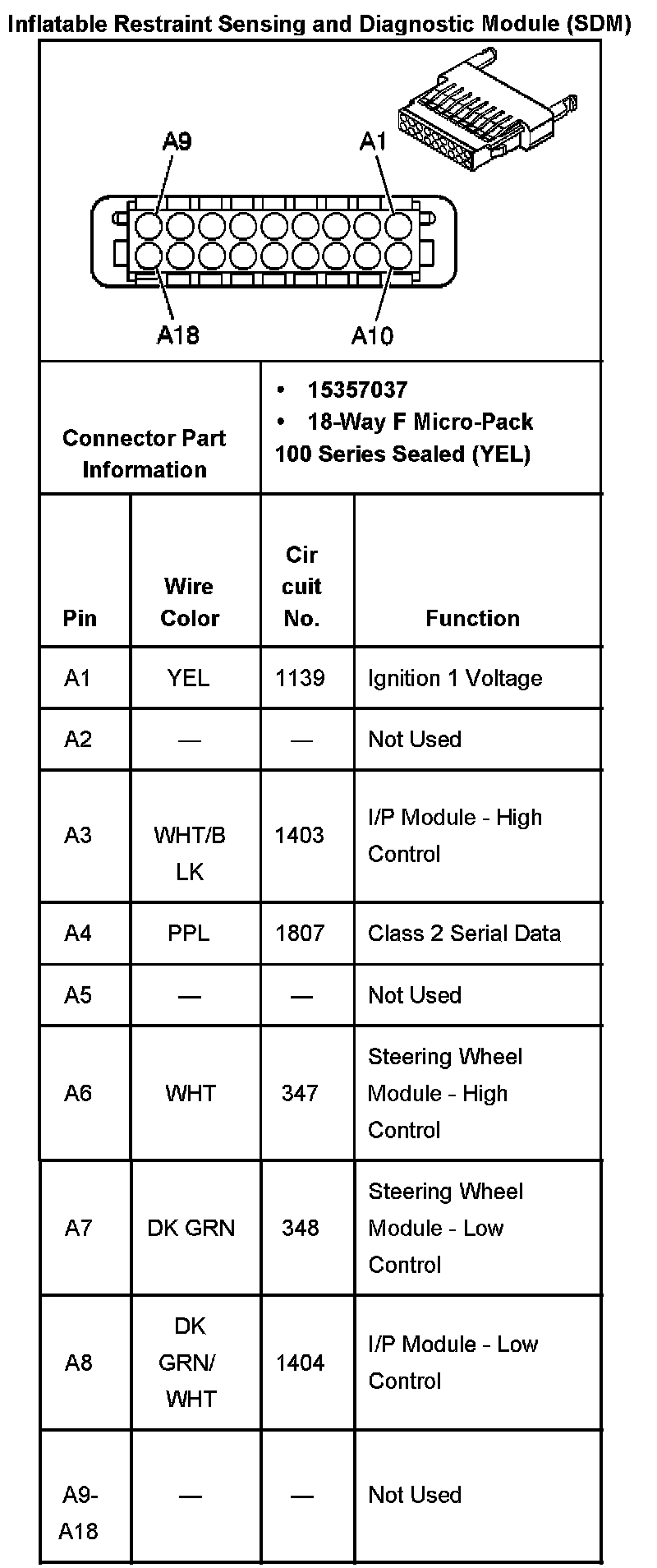 Inflatable Restraint Sensing And Diagnostic Module (SDM):