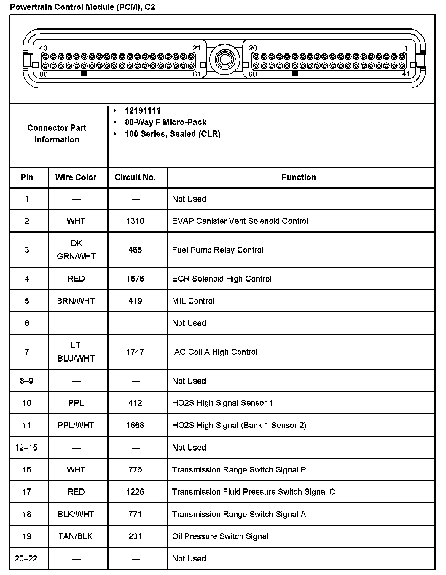 Powertrain Control Module (PCM) Connector C2