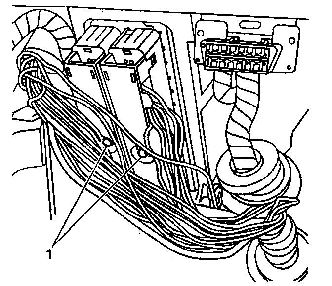3. Loosen the powertrain control module (PCM) connector screws (1).