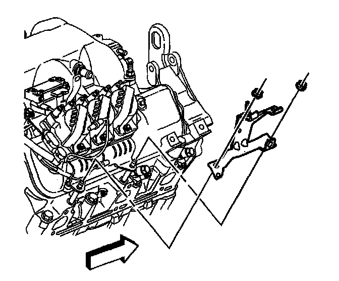 7. Remove air injection check valve rear bracket and nuts.