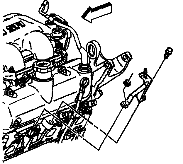 6. Remove air injection check valve front bracket and bolt.